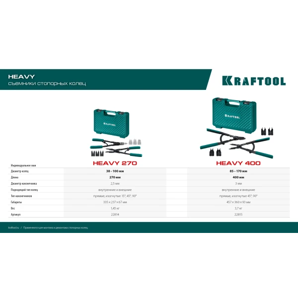 KRAFTOOL HEAVY 400 внешний/внутренний, съемник стопорных колец (22815)