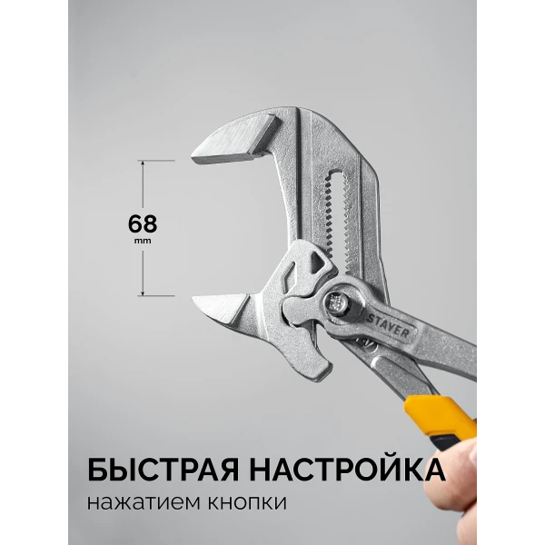 STAYER PlierWrench 300 мм, захват 68 мм, переставные клещи-гаечный ключ (22403)