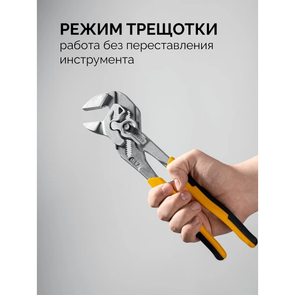 Клещи переставные-гаечный ключ – профессиональный инструмент с постоянно параллельными губкам. Заменит набор из всех ключей и обеспечит полную сохранность хромированного крепежа.