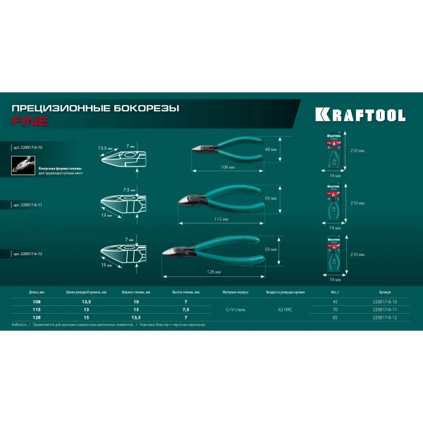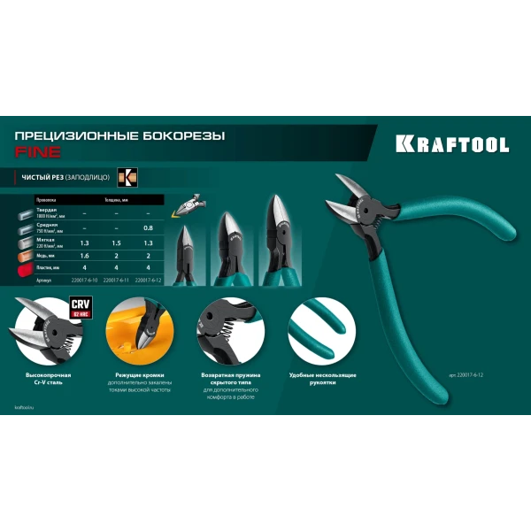 KRAFTOOL PRECISION чистый рез 128 мм, Прецизионные бокорезы (220017-6-12)