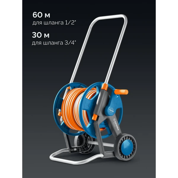 GRINDA HC-60, для шлангов 60м x 1/2″ и 30м х 3/4″, усиленные колёса, телескопическая ручка, катушка для шлангов ProLine (8-428430)