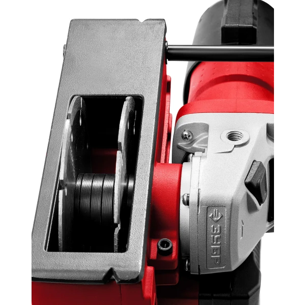 - Закрывающий зону работы подпружиненный кожух предотвращает разброс продуктов реза при любой глубине штробы