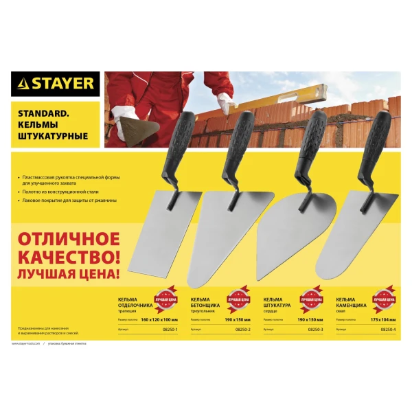 STAYER 185 x 120 x 100 мм, пластмассовая ручка, кельма отделочника (08250-1)