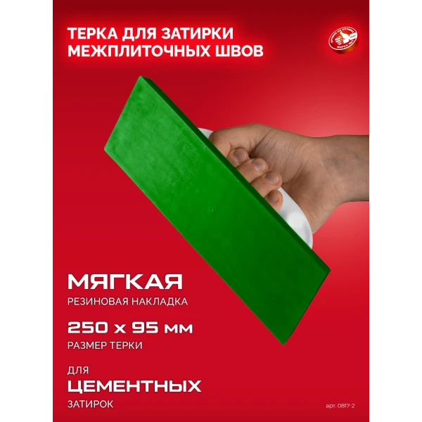 Предназначен для цементой затирки межплиточных швов. Прочное резиновое основание не повреждается при работе.