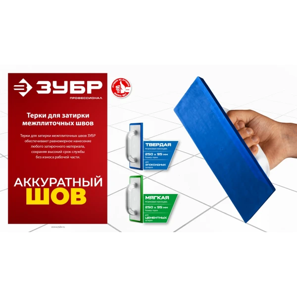 ЗУБР 250 х 95 мм, терка для затирки межплиточных швов, мягкая резина (0817-2)