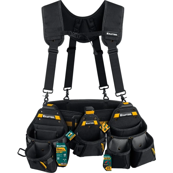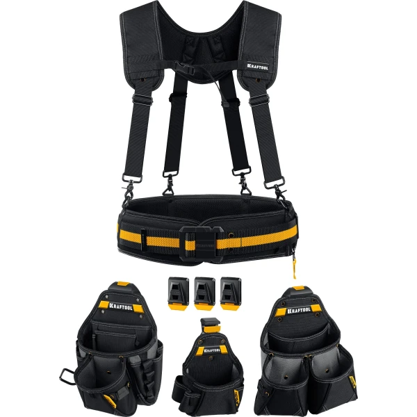 KRAFTOOL KBS-5 в комплекте: пояс монтажника, подтяжки и 3 сумки, пояс монтажника (38760-5)
