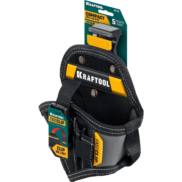 KRAFTOOL KH-5C с быстросъёмным креплением FastClip, 5 карманов и петель, кобура для компактного шуруповерта (38770)