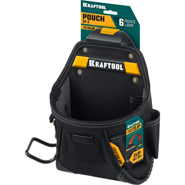 KRAFTOOL KP-6 с быстросъёмным креплением FastClip, 6 карманов и петель, 240 х 250 мм, поясная сумка (38775)