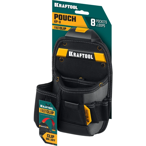 KRAFTOOL KP-8 с быстросъёмным креплением FastClip, 8 карманов и петель, 170 х 260 мм, поясная сумка (38776)