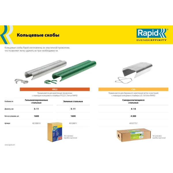 RAPID FP222, VR22, 5 - 11 мм, 1600 шт, кольцевые профессиональные стальные скобы (40108810)
