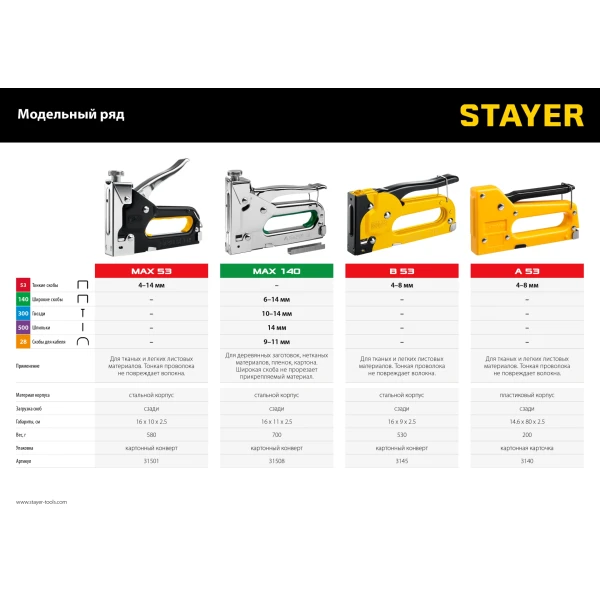 STAYER Max-53, тип 53 (A/10/JT21) 23GA (4 - 14 мм), стальной степлер (31501)