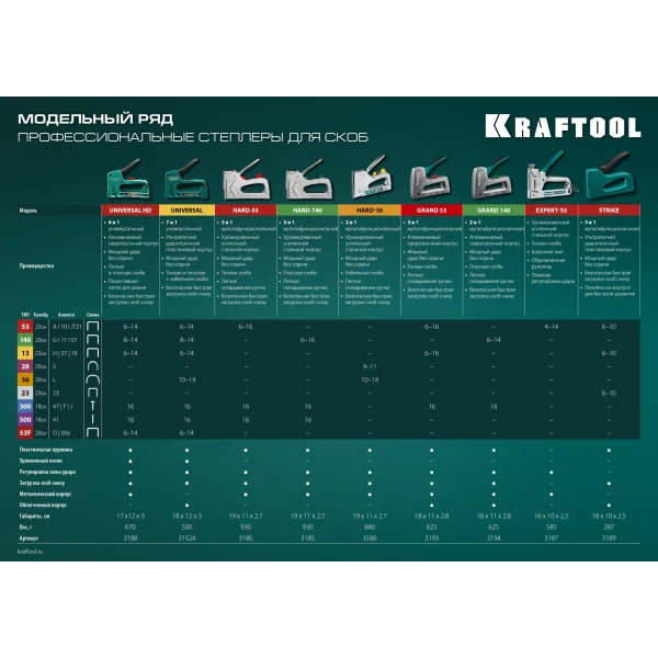 | Тип скобы, гейдж и возможные аналоги других производителей | 53 3в1: 53 (6-16 мм) 23GA / 300 (16 мм) 18GA / 500 (16 мм) 18GA |