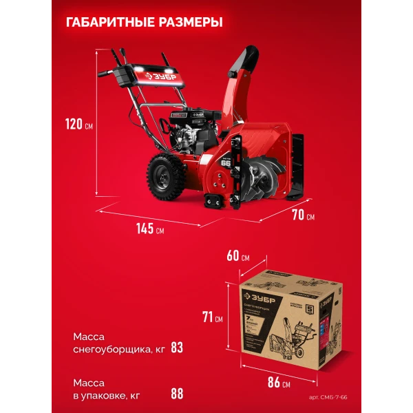 ЗУБР 66 см, бензиновый снегоуборщик (СМБ-7-66)