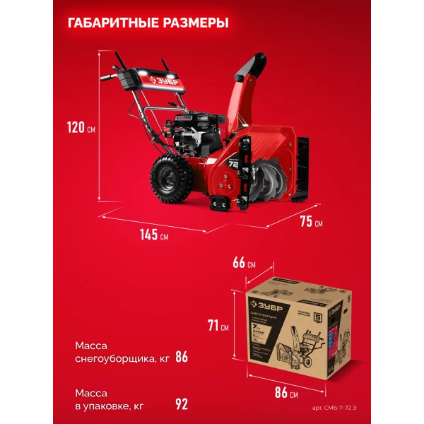 ЗУБР 72 см, бензиновый снегоуборщик (СМБ-7-72 Э)