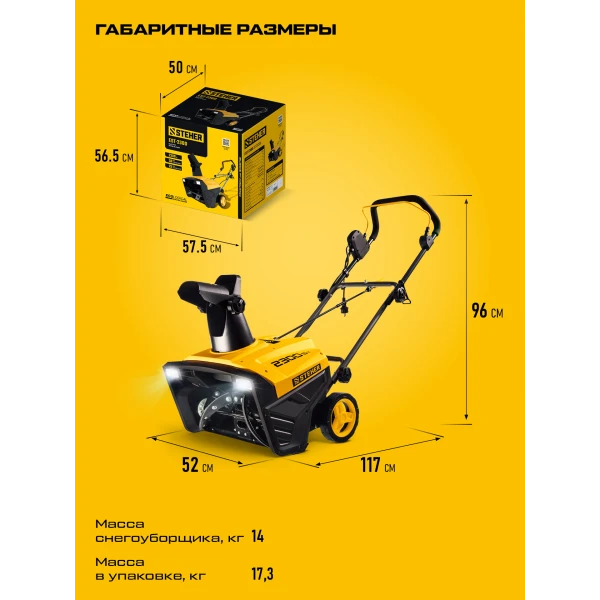 Мощный электрический снегоуборщик STEHER разработан для быстрой и эффективной уборки придомовых территорий, путей подъезда и пешеходных дорожек.