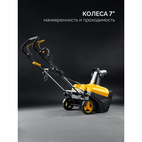 - Колеса 7″ позволяют легко перемещать снегоуборщик