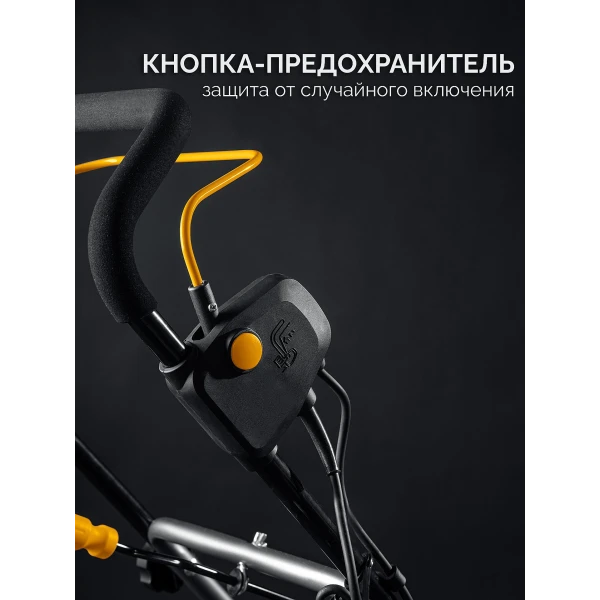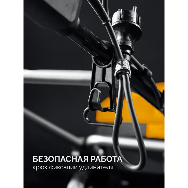 - Мягкая накладка для комфортного хвата во время работы и широкая скоба включения для использования обеими руками, облегчают работу