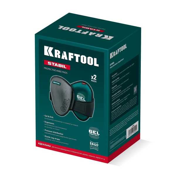 KRAFTOOL STABIL эргономичные, гелевая вставка, воздухопроницаемые, для легко повреждаемых поверхностей, наколенники защитные (11516)