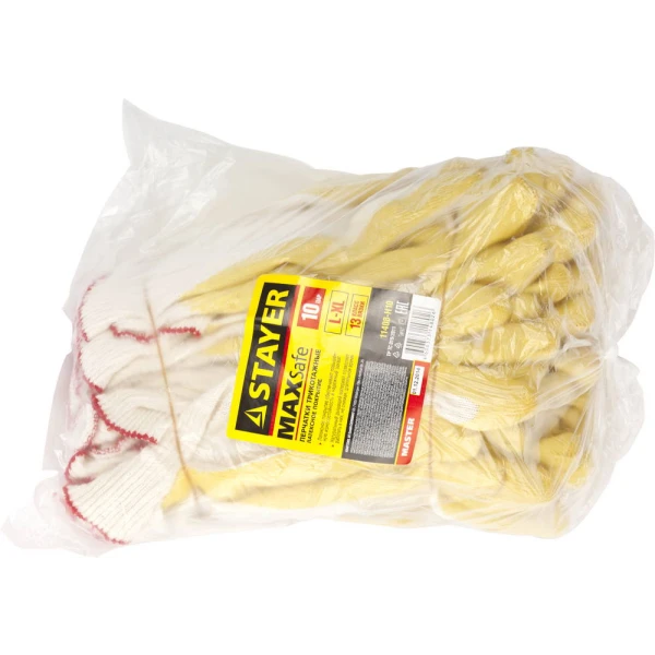 STAYER PROTECT, L-XL, х/б перчатки с одинарным латексным обливом, 13 класс, 10 пар (11408-H10)