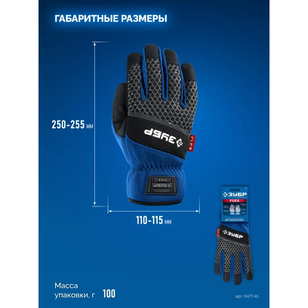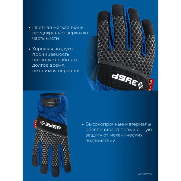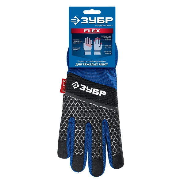 ЗУБР FLEX р.XL (10), синие, профессиональные комбинированные перчатки, работа с сенсорными экранами, Профессионал (11477-XL)