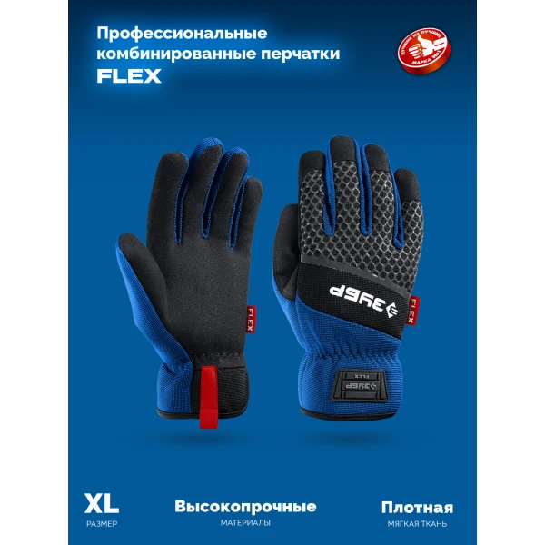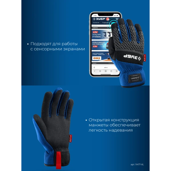 ЗУБР FLEX р.L (9), синие, профессиональные комбинированные перчатки, работа с сенсорными экранами, Профессионал (11477-L)