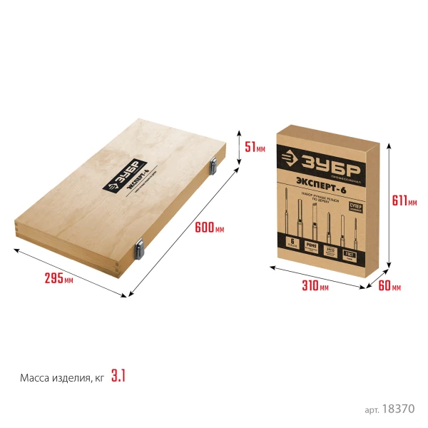 ЗУБР Эксперт-6, 6 предм., набор ручных резцов по дереву, Профессионал (18370)
