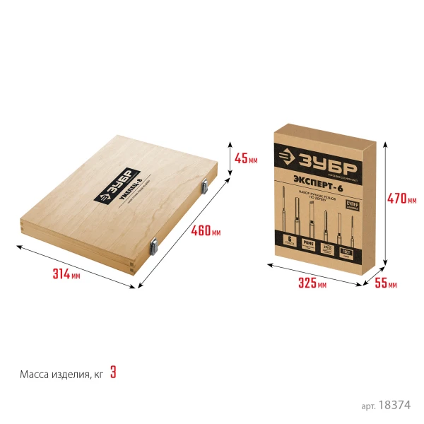 ЗУБР УМЕЛЕЦ-8, 8 шт, Р6М5, набор ручных резцов по дереву, Профессионал (18374)