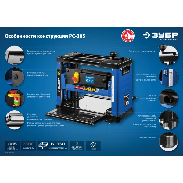 ЗУБР 305 мм, 2000 Вт, рейсмусовый станок, Профессионал (РС-305)