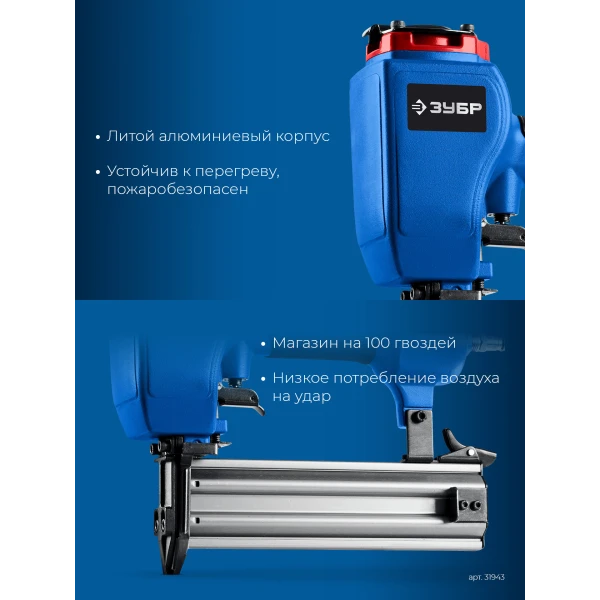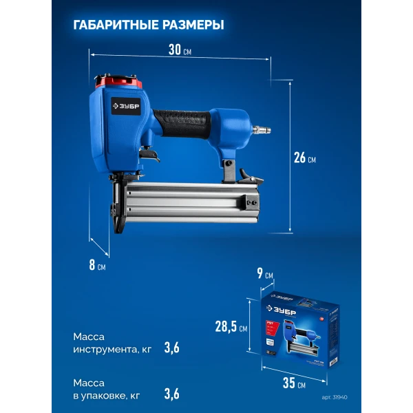 ЗУБР FST-50, пневматический нейлер для гвоздей по бетону и металлу ПРОФЕССИОНАЛ (31943)