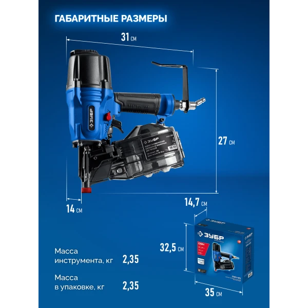 ЗУБР CSN-65, пневматический обшивочный нейлер для барабанных гвоздей ЗУБР CSN (38-65 мм) ПРОФЕССИОНАЛ (31922)