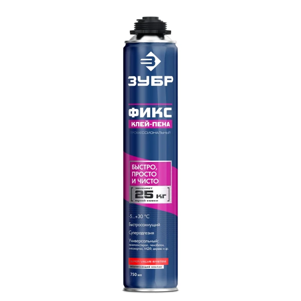 Однокомпонентный полиуретановый монтажный клей-пена ЗУБР обеспечит быстрое и надежное крепление различных строительных материалов. Используется с пистолетом.