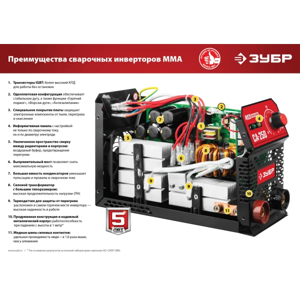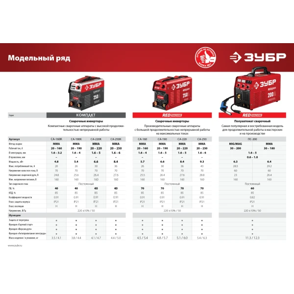 ЗУБР ММА, 160 А, RED MACHINE, сварочный аппарат инверторный, макс. электрод Ø 4.0 мм (СА-160)