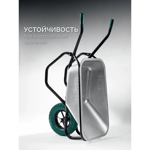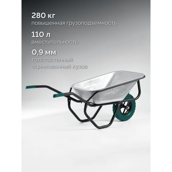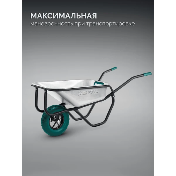 KRAFTOOL MAXDrive-1 110л, 260 кг, одноколесная, с трубным усилителем, кузов 0,9 мм, полиуретановое колесо, тачка строительная (39862)