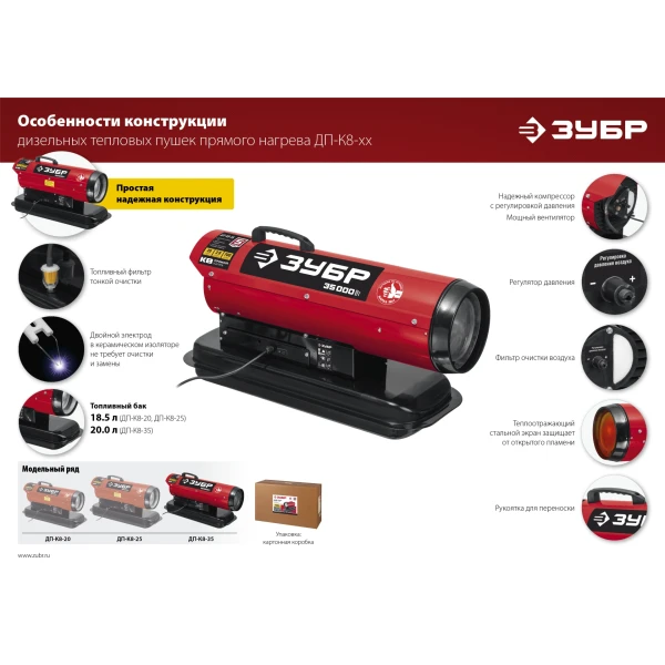 ЗУБР 25 кВт, дизельная тепловая пушка, прямой нагрев (ДП-К8-25)