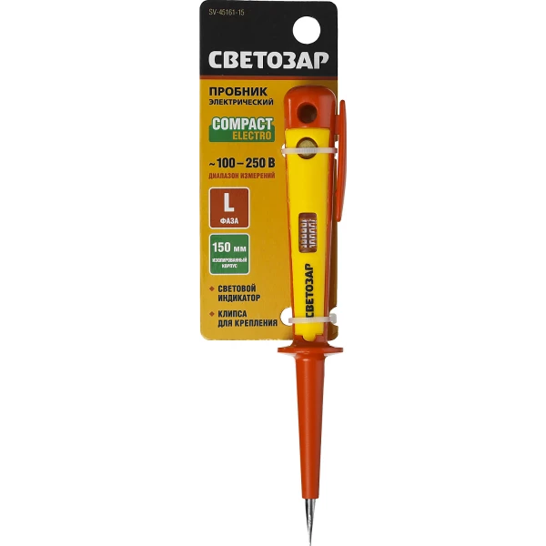 СВЕТОЗАР 100 - 250 В, 190 мм, электрический пробник (SV-45161-15)