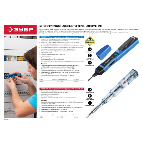 ЗУБР 70 - 250 В, 70 - 600 В, 140 мм, многофункциональный тестер напряжения (45235)