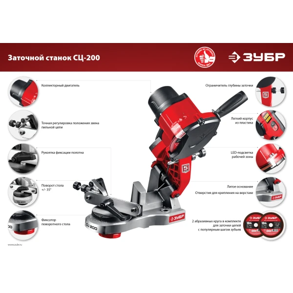 ЗУБР d 104 мм, 90 Вт, заточной станок для пильных цепей (СЦ-200)