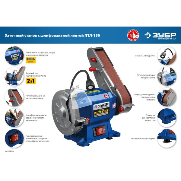 ЗУБР d 150, 50x686 мм лента, 300 Вт, заточной станок с шлифовальной лентой, Профессионал (ПТЛ-150)