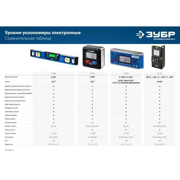 ЗУБР 400 мм, 0-90°, ±0,2°, уровень-уклономер, Профессионал (34286)