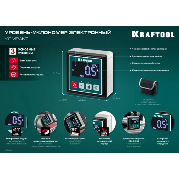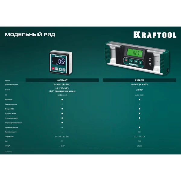 KRAFTOOL KOMPAKT, 4 х 90 С, точность 0.1, уровень-уклономер электронный (34687)