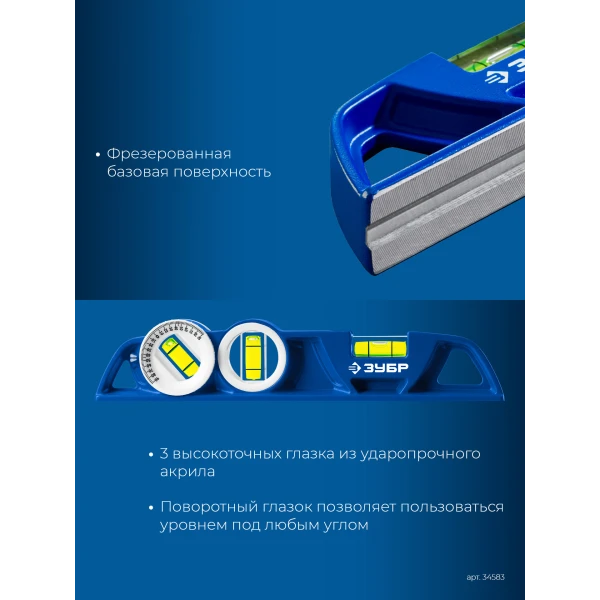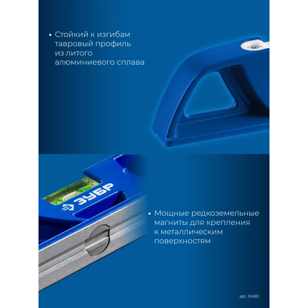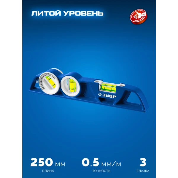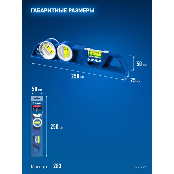 ЗУБР ЛИТОЙ 250 мм, магнитный уровень (34583)