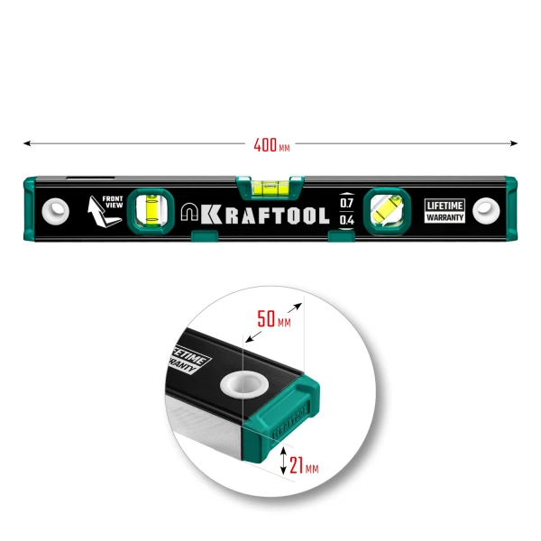 KRAFTOOL 400 мм, усиленный профиль, с зеркальным глазком, магнитный уровень (34785-40)