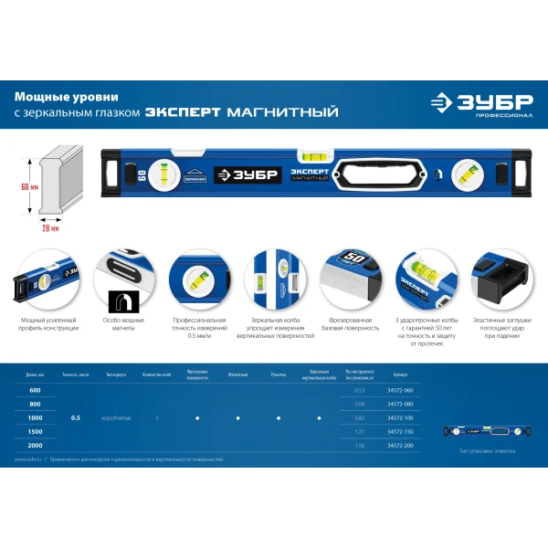 ЗУБР ЭКСПЕРТ-М, 2000 мм, с зеркальным глазком, мощный магнитный уровень, Профессионал (34572-200)