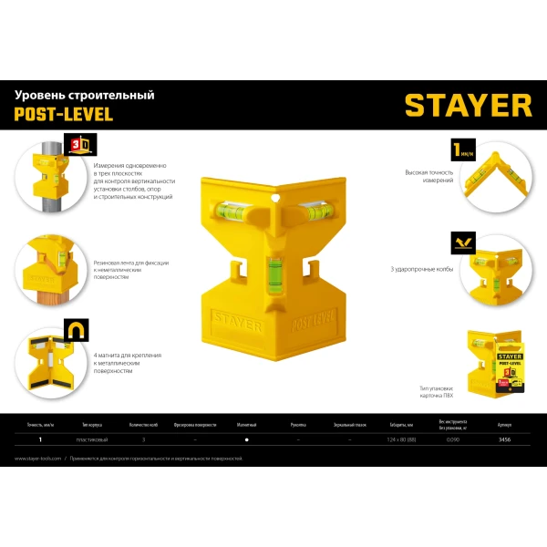 STAYER POST LEVEL, магнитный уровень-угольник (3456)