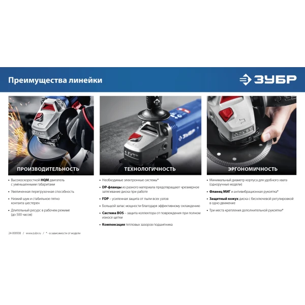 - лабиринтное уплотнение всех шариковых подшипников создает непроницаемый для пыли воздушный барьер - Антивибрационные основная и дополнительная рукоятки для более комфортной работы при самых неблагоприятных условиях