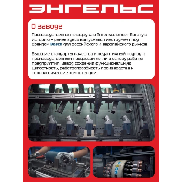 ЭНГЕЛЬС — это отечественный бренд электроинструментов для профессионального использования от завода—производителя в городе Энгельс.