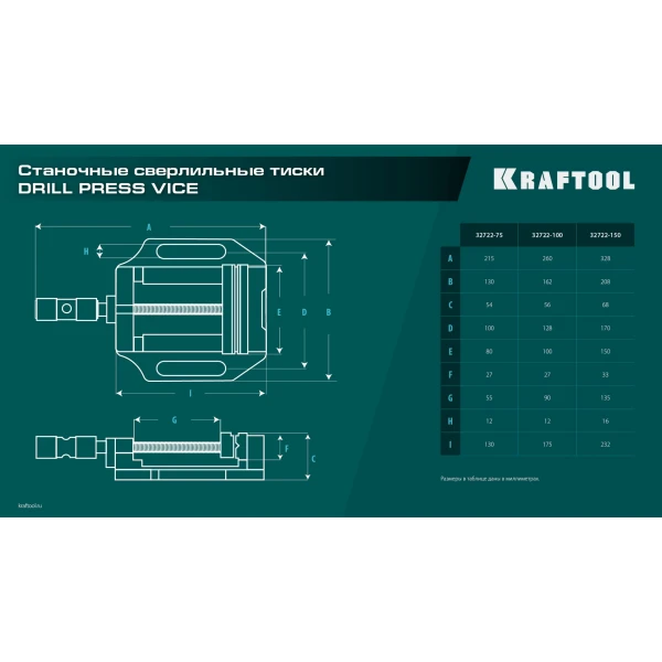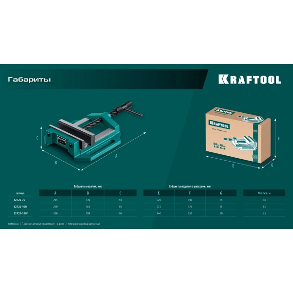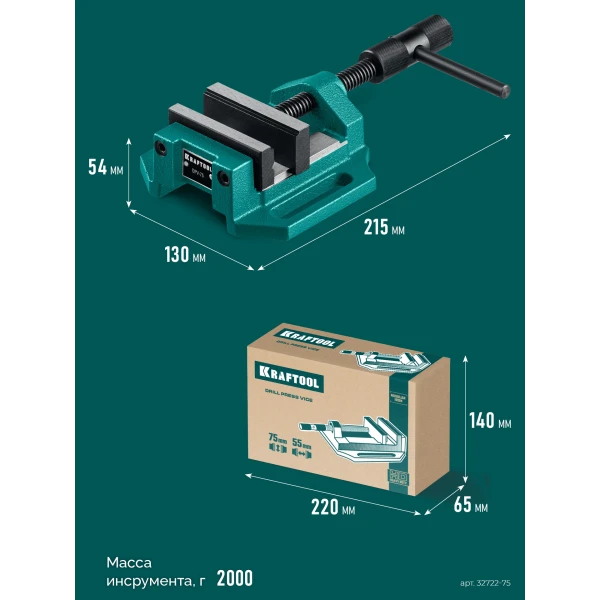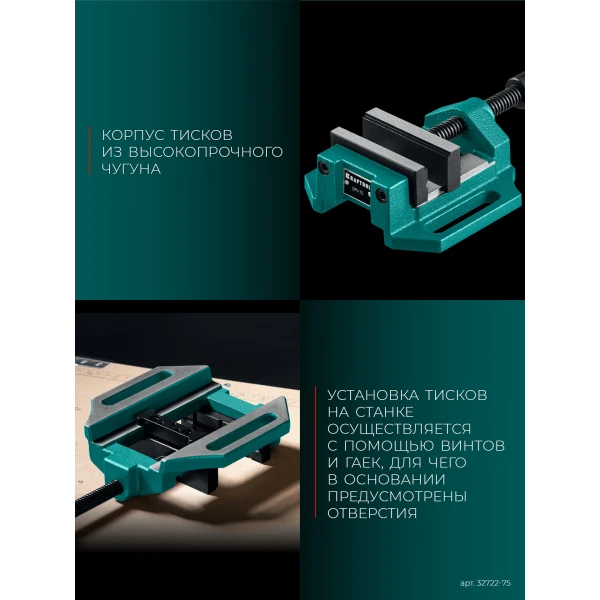 KRAFTOOL DPV-75, 75 мм, станочные сверлильные тиски (32722-75)