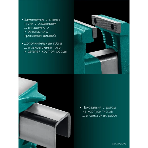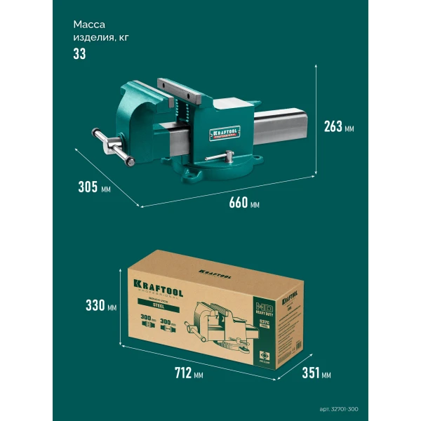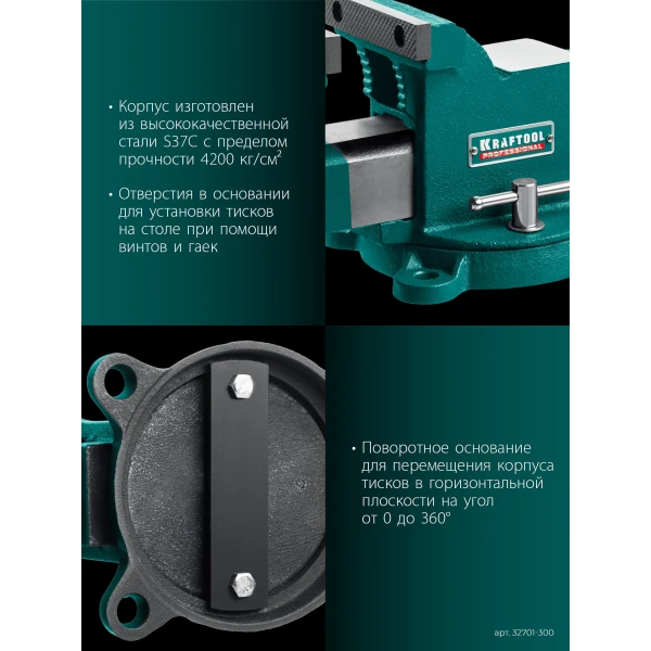 KRAFTOOL STEEL, 300 мм, стальные слесарные тиски (32701-300)