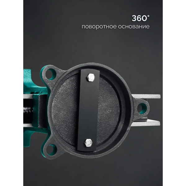 - Поворотное основание позволяет перемещать корпус тисков в горизонтальной плоскости на угол от 0 до 360 градусов