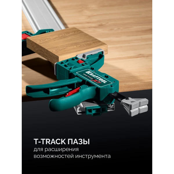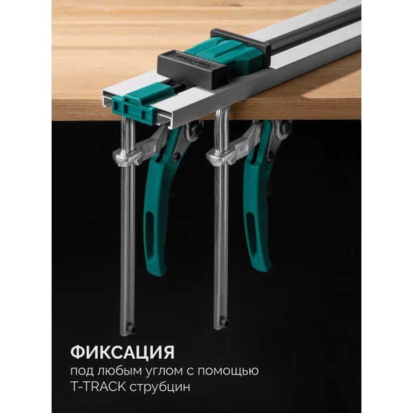Профессиональный зажимной инструмент из авиационного алюминия, усиленный ребрами жесткости. Два специальных паза T-track значительно расширяют возможности применения.